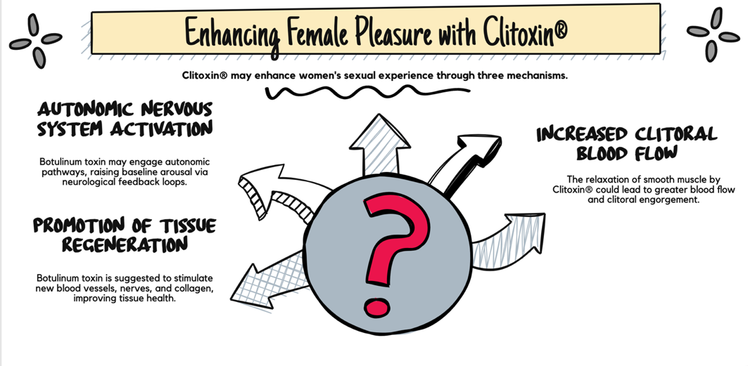 Clitoxin®, a botulinum neurotoxin (BoNT) injection into the clitoris, offers a novel approach. It potentially enhances sexual function, including orgasm, through several mechanisms: